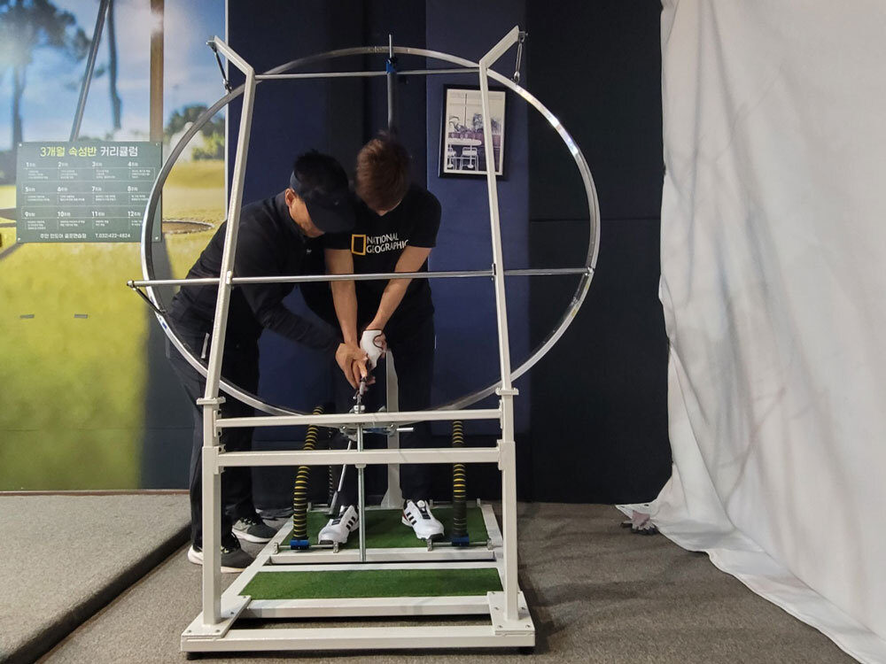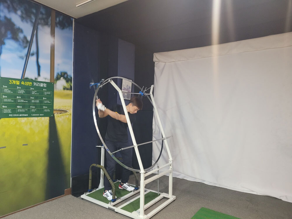 회원분들의 스윙궤도와 자세교정 레슨을 더욱 체계적으로 하기 위하여 프로스윙머신 설치